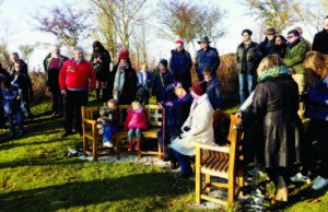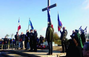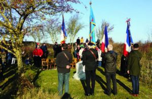 M. Christian Bernard. The weather was cold and bright and sunny as we set off to process the cemeteries and memorials before moving across to La Boisselle to pay our respects there also. At each location a group of schoolchildren from the commune read a short passage as the gerbes and wreaths were laid. These occasions are always so moving especially when accompanied by our wonderful pipers, and this year was no exception. Claudie Llewellyn-Lejeune welcomed everyone as we took a short detour through the Glory Hole (L’Ilôt) on our way to the Tyneside Seat.