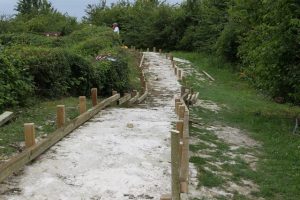 The original walkway was started in 2011 as the undulating path around the rim became more and more hazardous, and with greatly increased footfall was being eroded at an alarming rate of up to six inches in four years.