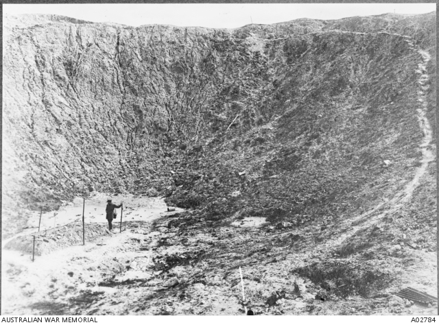 Another from early days: an Australian soldier at the bottom of the crater.