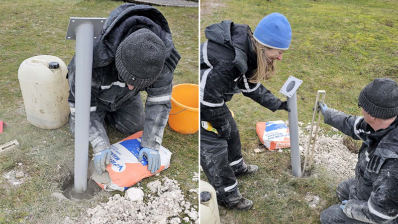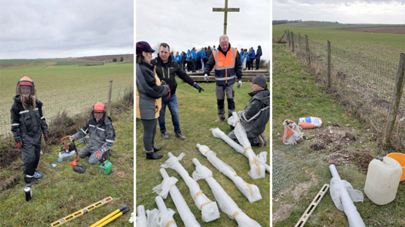 Cyrille Delplanque did a wonderful job beforehand liaising and organising our supply of post cement in readiness for the task. He also came out to help with the really hard work at the Crater on the day. Julie Thomson broadcast a Facebook Livestream as the posts were being fitted. A magnificent effort from everyone, especially Richard and Sam, and we are pleased to say it all went very smoothly.
