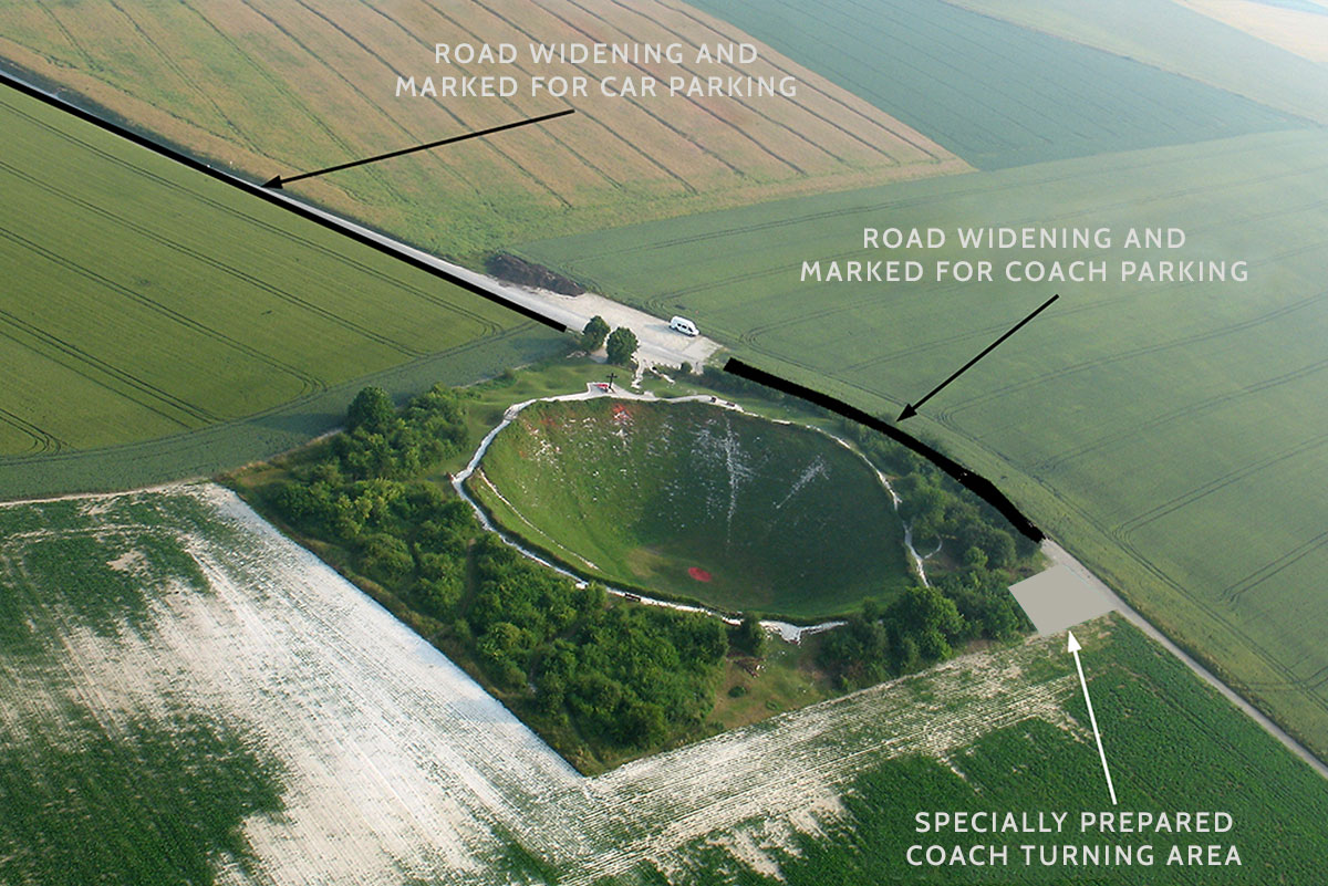 A 200m length of the lane has been widened by 3m to provide clearly marked parking spaces for coaches and cars.
